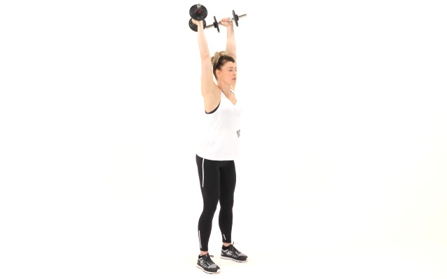 You'll need a set of dumbbells or, if you don't have any, some small bottles of water.