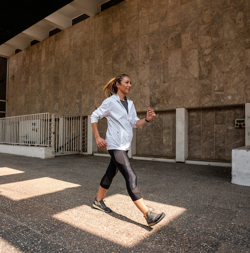 Before each session, warm up by walking at your natural pace for a few metres then gradually increase the pace! You may incorporate some exercises for the joints such as shoulder and ankle rolls, as well as hip rotations.
