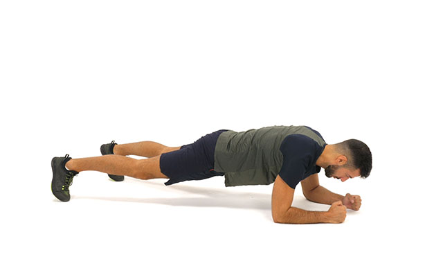 Sigue apretando el abdomen con fuerza y recuerda siempre juntar los omóplatos para que la espalda trabaje mejor.