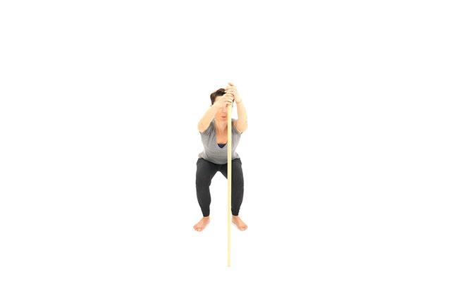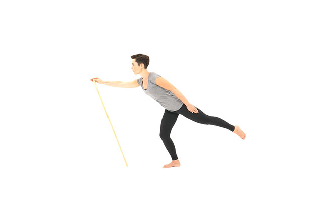 Para realizar esta sesión necesitarás un bastón o una escoba. También puedes, dependiendo de tu nivel de equilibrio, trabajar sin el bastón, o podría ser parte de tu objetivo.
