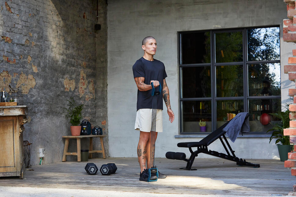 "Prenez le temps de faire les exercices et de bien vous placer. Dans cette séance, vous utiliserez l'extenseur bas du corps."