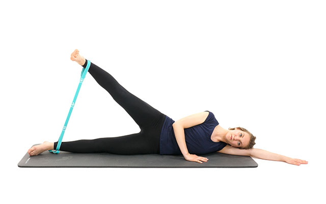Dans cette séance, vous avez le choix entre effectuer les exercices avec une Pilates band ou avec une bande élastique.