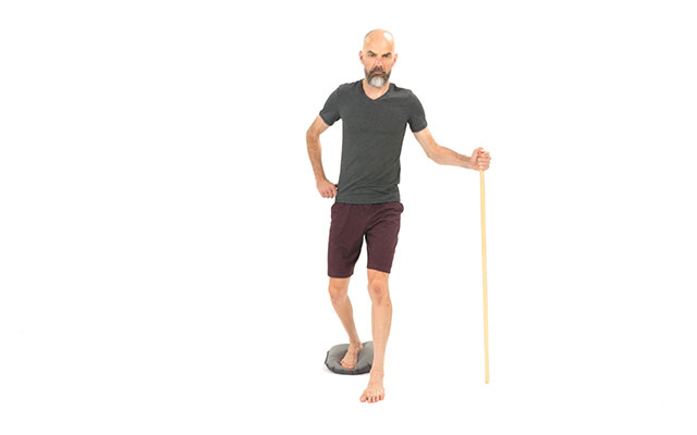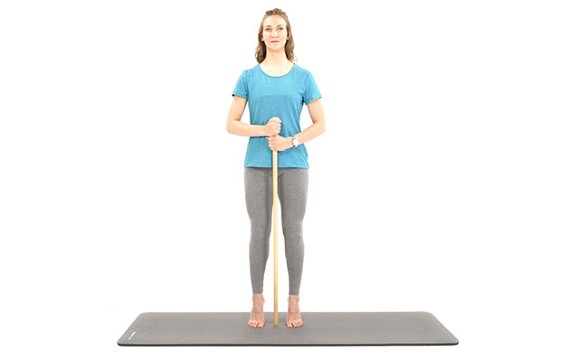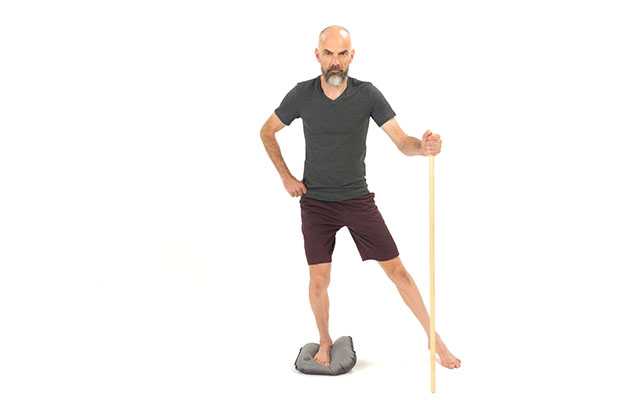 Le bâton de gym est votre meilleur allié pour débuter en équilibre. Il vous aidera à vous stabiliser.
