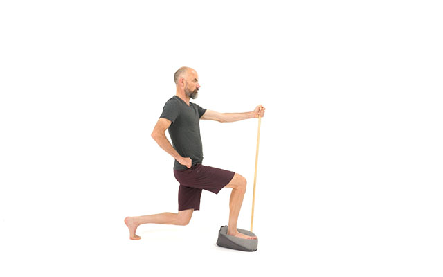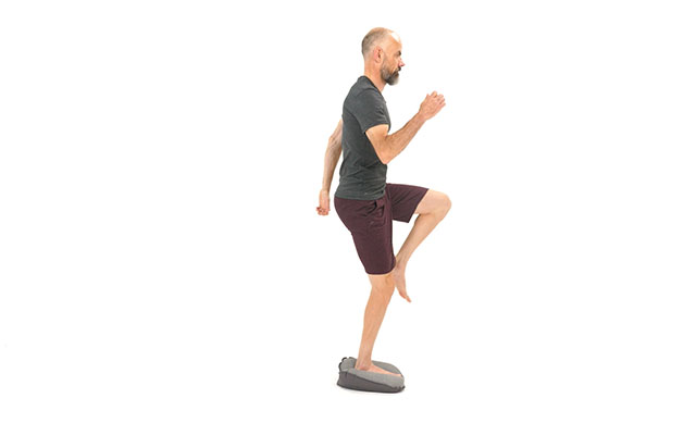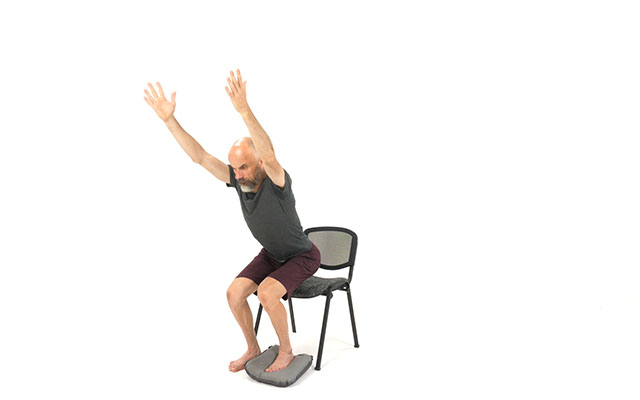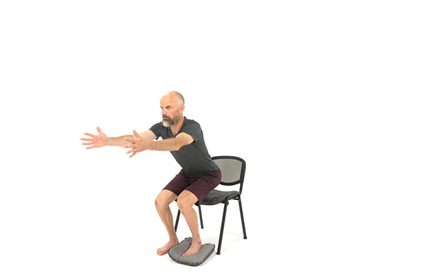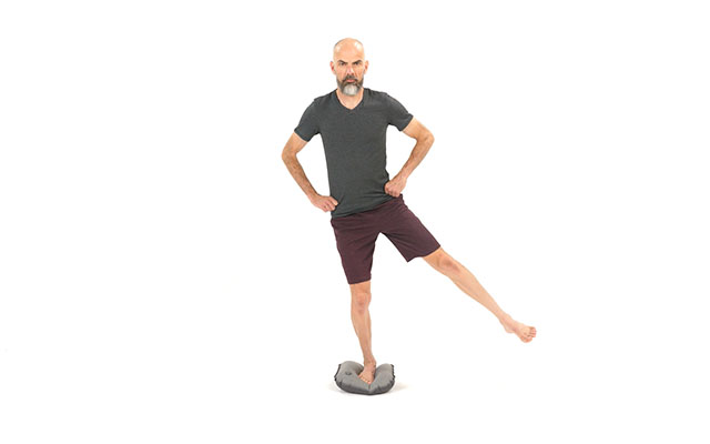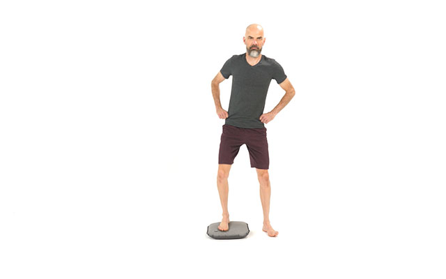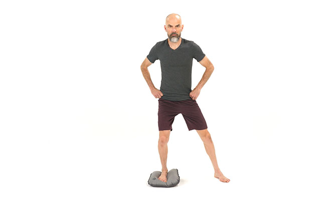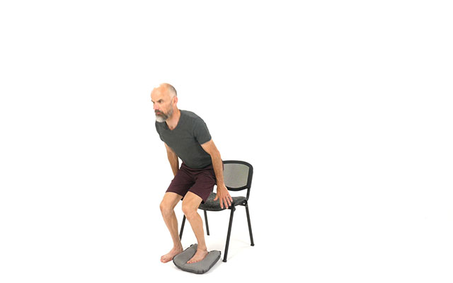 Si c'est la première fois que vous réalisez des exercices avec ce coussin, privilégiez le gonflage minimum ( tant que votre pied ne touche pas le sol ). Au contraire, si vous avez l'habitude de l'utiliser, gonflez le davantage pour rajouter de la difficulté.
