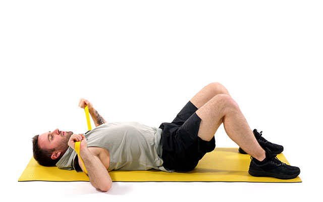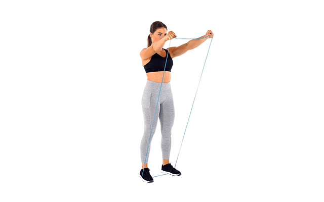 Commencez le premier tour par la résistance facile puis prenez un élastique avec une résistance plus difficile pour les tours suivants.