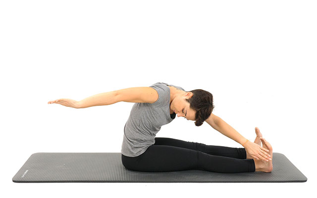 Le Teaser, l'exercice emblématique du Pilates, pour un travail intense d'équilibre et de force abdominale.