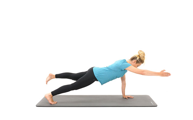 Des exercices d'équilibre et de force pour le corps entier (Control Balance, Reverse Plank).