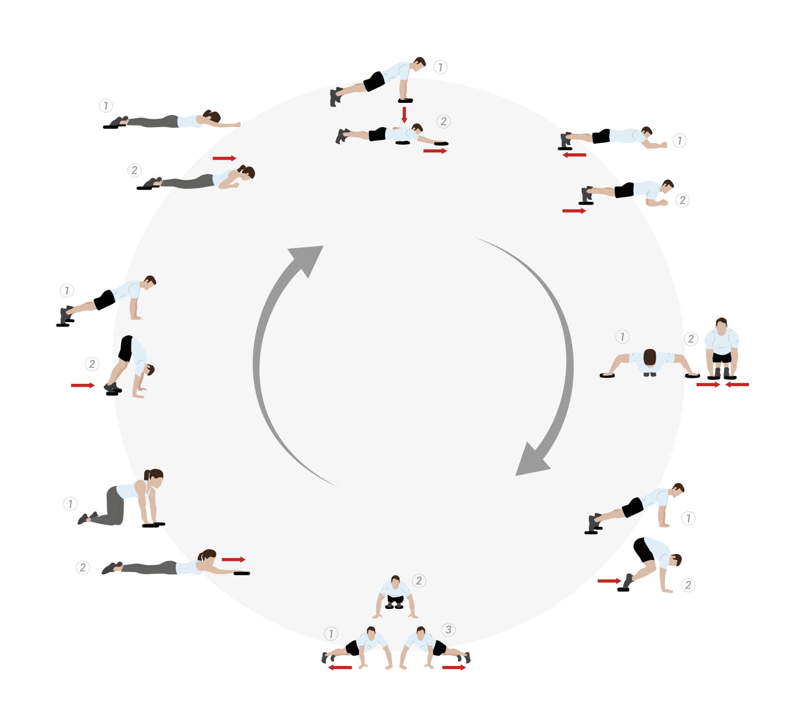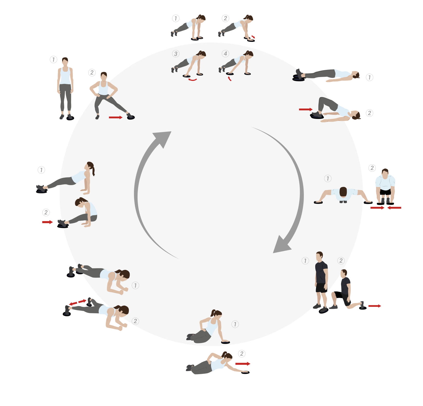 Ainsi, plutôt que de lever vos bras ou vos jambes lors d'exercices de musculation, vousfaites glisser vos mains et vos pieds sur le sol tout en soutenant votre poids.