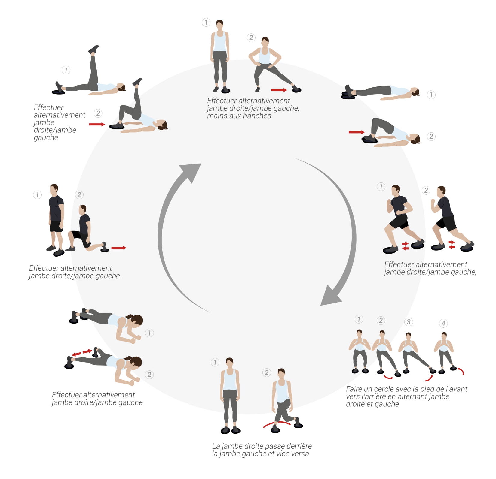 Après un échauffement de 4 exercices, vous allez enchainer les 8 exercices