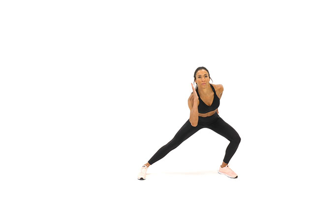 Le 2ème bloc comprend 4 répétitions de 30 secondes de pas chassés squats puis de course latérale.