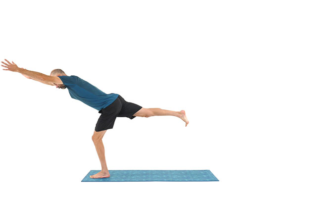 Se necessário, recorre a um bloco de espuma para ajudar na postura de meia-lua
