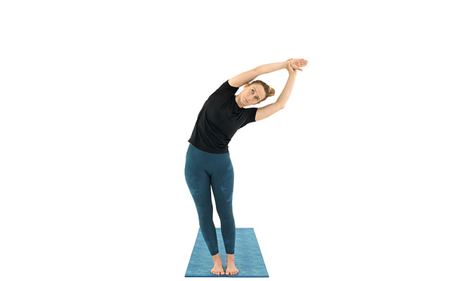 Depois de alguns exercícios de aquecimento, realizarás a saudação ao sol 3 vezes de cada lado.
