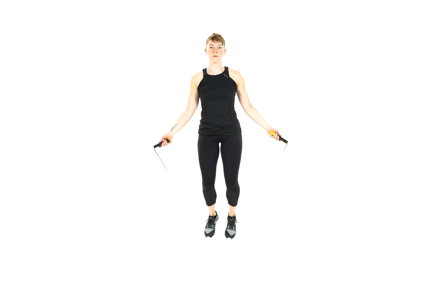 Разминка со скакалкой: Прыжки на месте и прыжки с разведением рук и ног