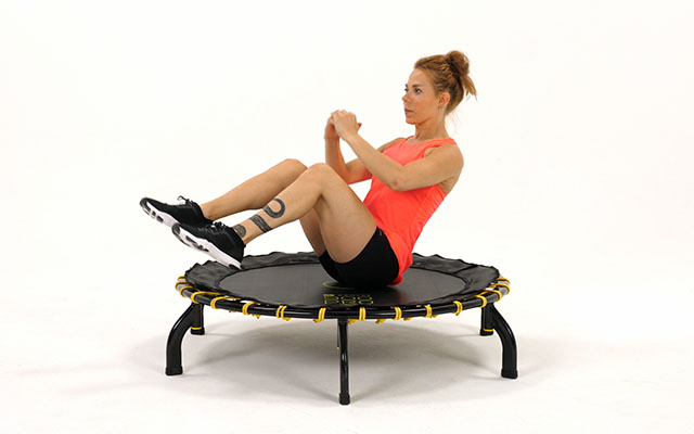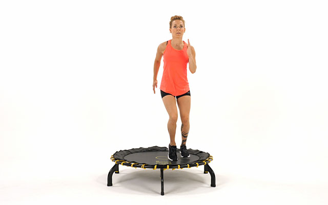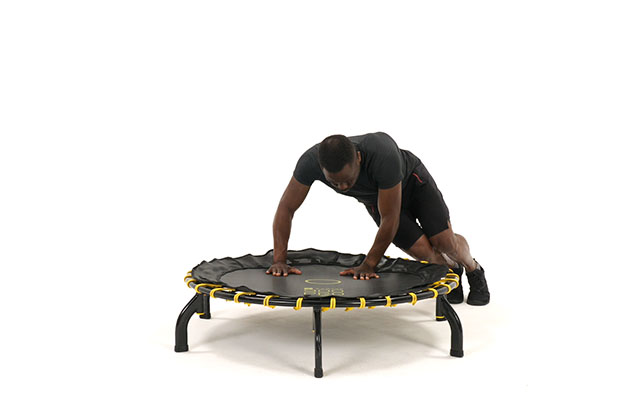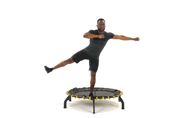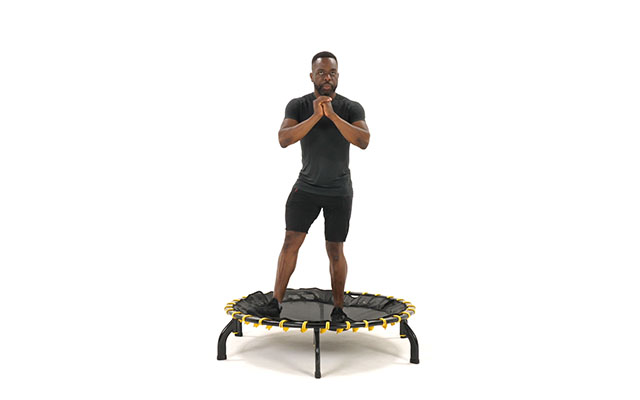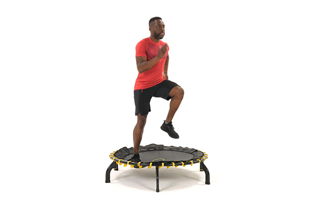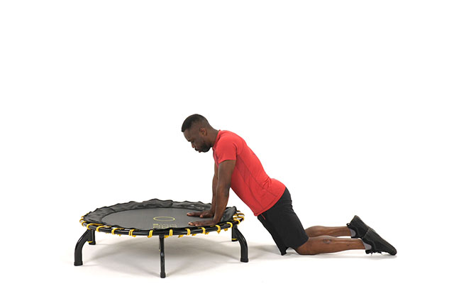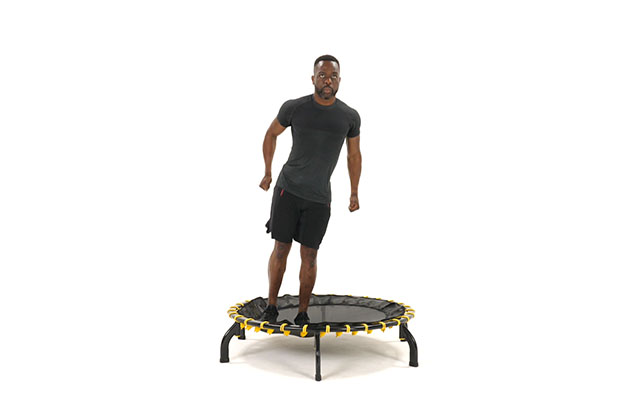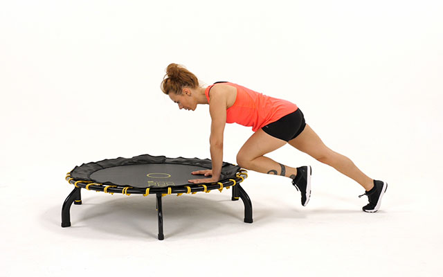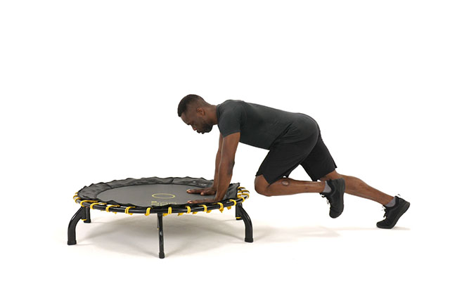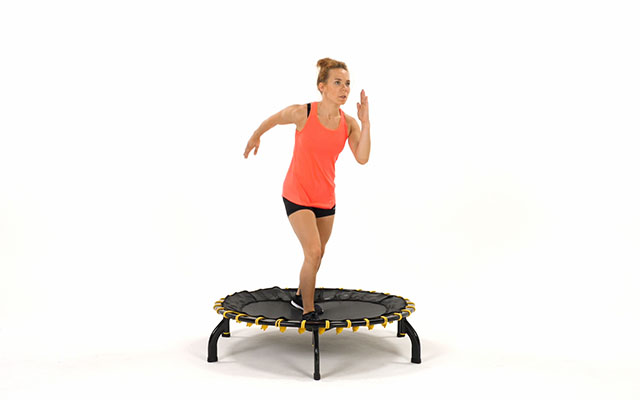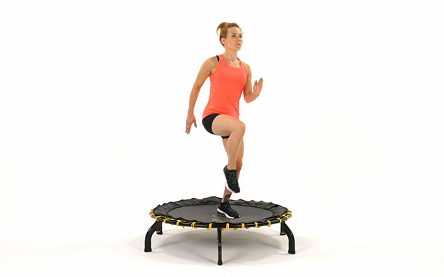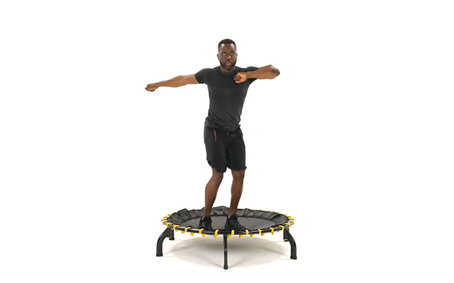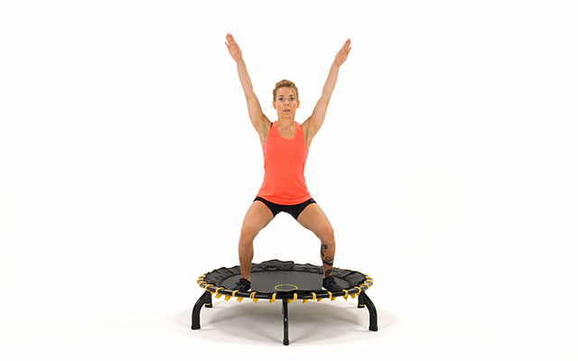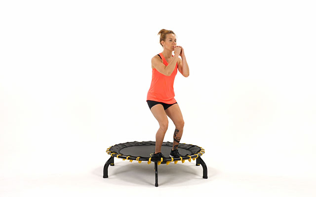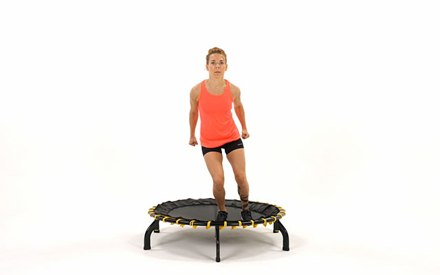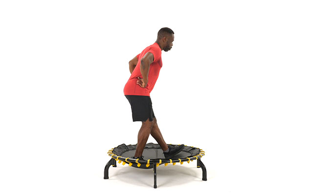 При динамичных движениях слегка наклоняйте корпус вперед, держите спину ровно. Это освобождает поясницу и высвобождает больше энергии при отталкивании от батута.